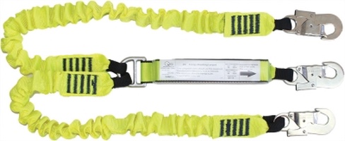 2 metre Elasticated Webbing double leg shock absorbing lanyard with double action hooks.