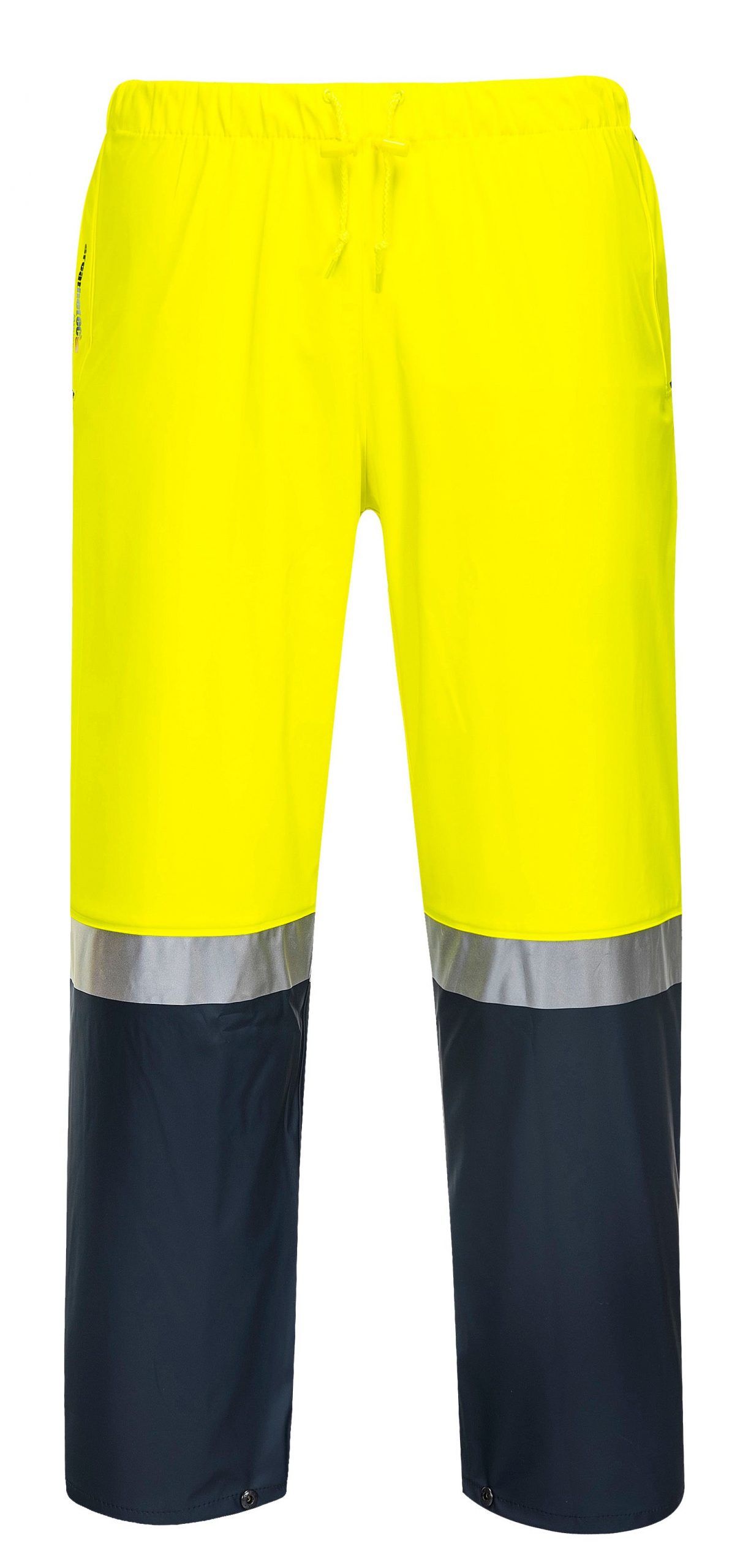 High visibility Waterproof/Breathable PU pants with durable knit backing & welded premium reflective tape detail. Technical bonded wind resistant fabric features 4 way stretch & welded seams. Also elastic comfort waist, adjustable snap cuff with over boot access, 2 side hand entry access splits.