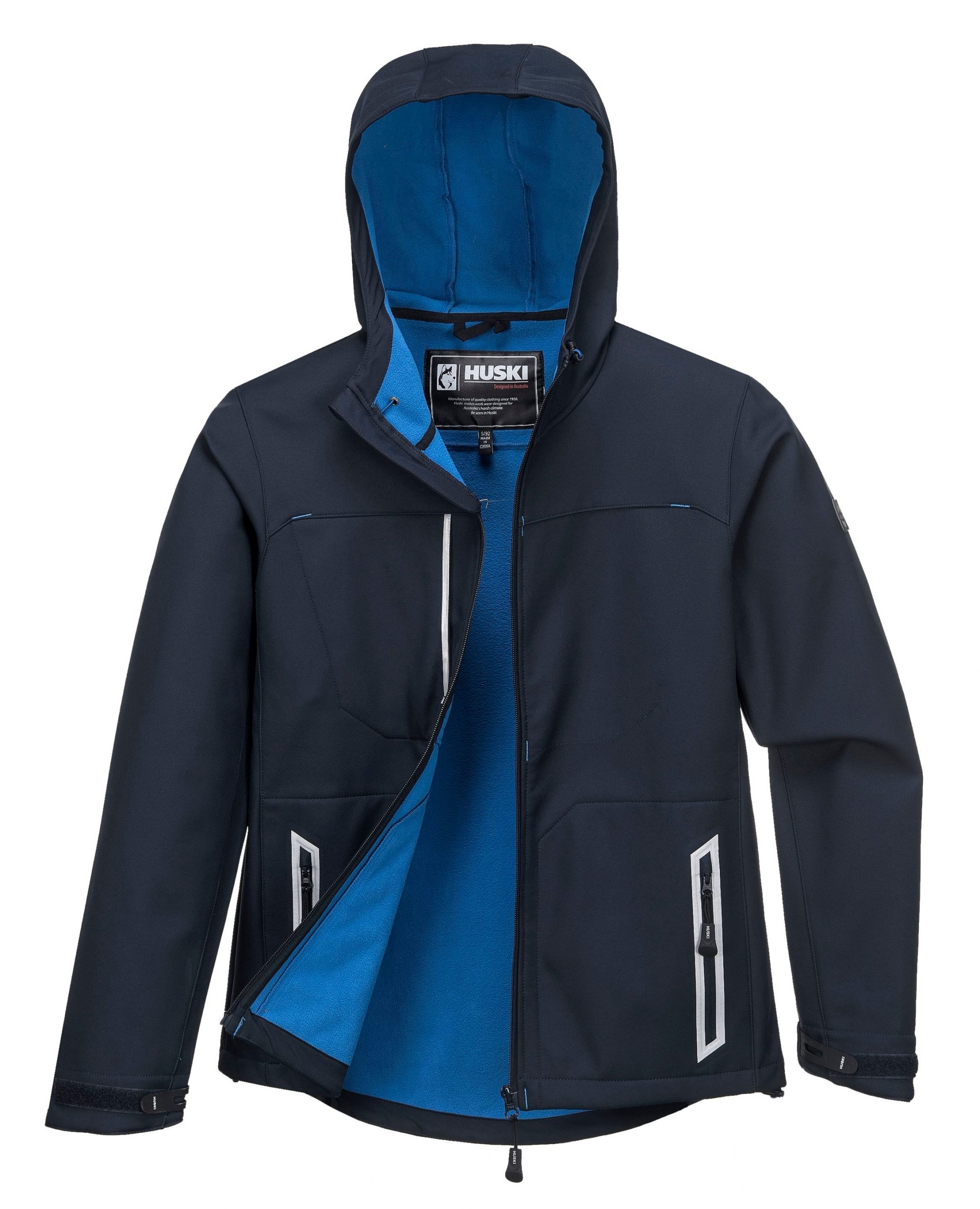 | K8112 -HUSKI MASON SOFTSHELL JACKET Mens soft shell hoodie jacket with contrast bonded fleece backing & trims. Features welded zips, hood with contrast lining, adjustable hem & cuff, BREATHETEC™ water resistant/breathable fabric coating, UPF50+ Shell Fabric: 100% Polyester Softshell 280g Sizing: Black/Orange, Navy/Cobalt S-5XL |