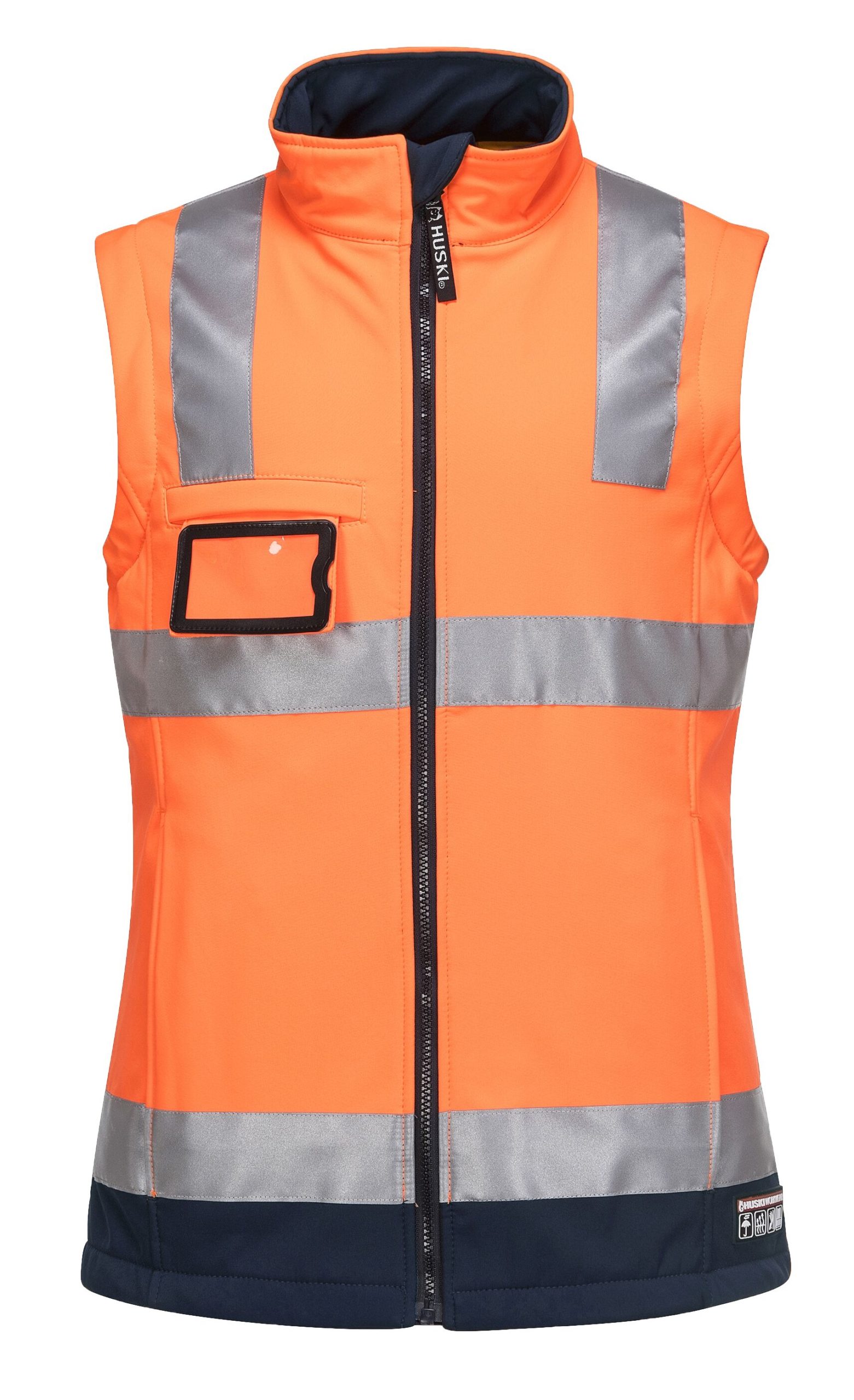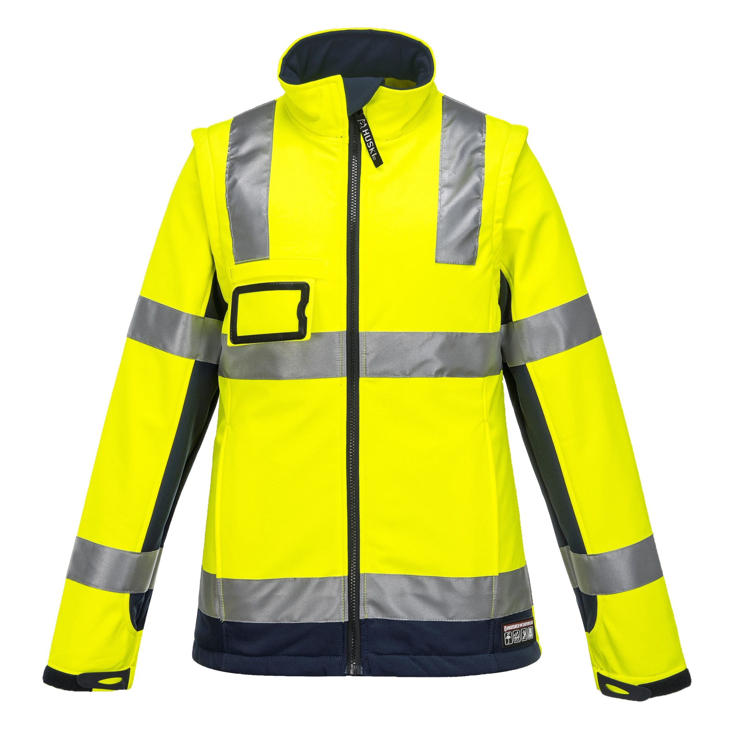 High visibility 3 layer softshell fabric is made from a 94% polyester / 6% Elastane outer layer, laminated to a TPU membrane, and bonded with a 100% polyester micro polar fleece inner layer. The outer layer is windproof, the mid layer provides water resistance while the inner layer adds warmth in cold temperatures yet offers excellent breathability.