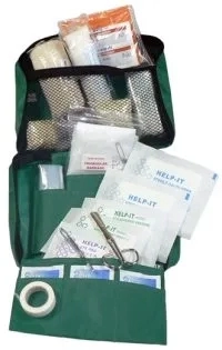 Triangle Bandage with 2 Safety Pins 2, Eye Pad 1, Wound Dressing 2, Non Adherent Dressing 5cm x 7.5cm 2, Gauze Swabs 2’s 7.5mm x 7.5mm 2, Roller Bandage 5cm wide 1, Paper Tape Roll 2.5cm 1, Plasters 20, First Aid Tweezers 1, Economy Scissors 1, Antiseptic Wipe 2, Irrigation Solution 1, CPR Resuscitation Mask 1, Examination gloves 2, First Aid Tips 1, Aids/Hepatitis Warning Label 1, Carry Pouch 1, Clean Up Bag (Contaminant) 1