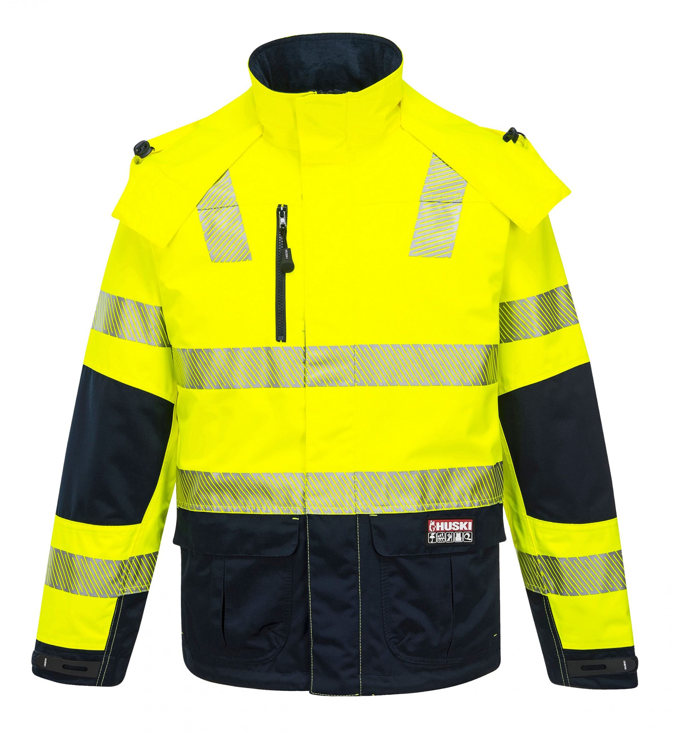 New “Soft Touch” but highly durable high visibility jacket, fully lined, waterproof/breathable with BREATHETEC™ coating on fabric. Also features premium heat sealed segmented reflective tape, concealed fold-away hood, adjustable cuff and hems and multiple pockets.