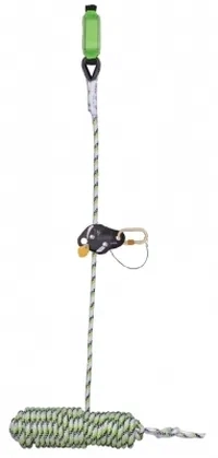 Once your anchor point is in place, you need a line system to attach yourself to. These systems mount easily on a variety of permanent and temporary anchor points to provide a safe line to work from. Anchorage lines are available in lengths of 30m. Guided Fall Arrester with Energy Absorbing Block on Flexible Anchorage Line The fall arrester is made of stainless steel and works on 12mm diameter Kernmantle rope.